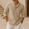Fabriquée en lin respirant avec des manches retroussées, la Chemise d'été en lin Capri est votre essentiel d'été facile—parfaite pour les journées chaudes et les nuits décontractées.
