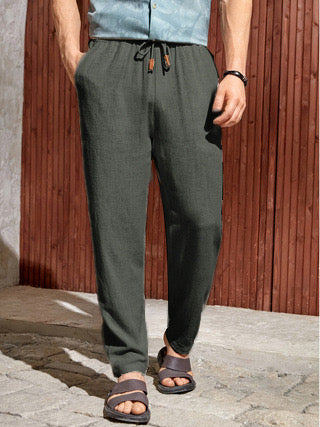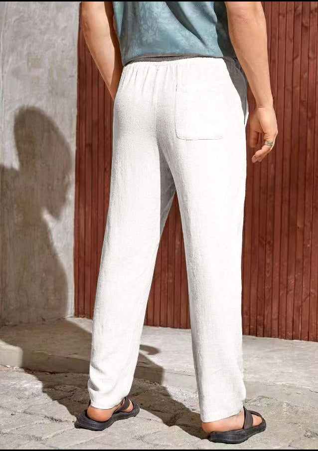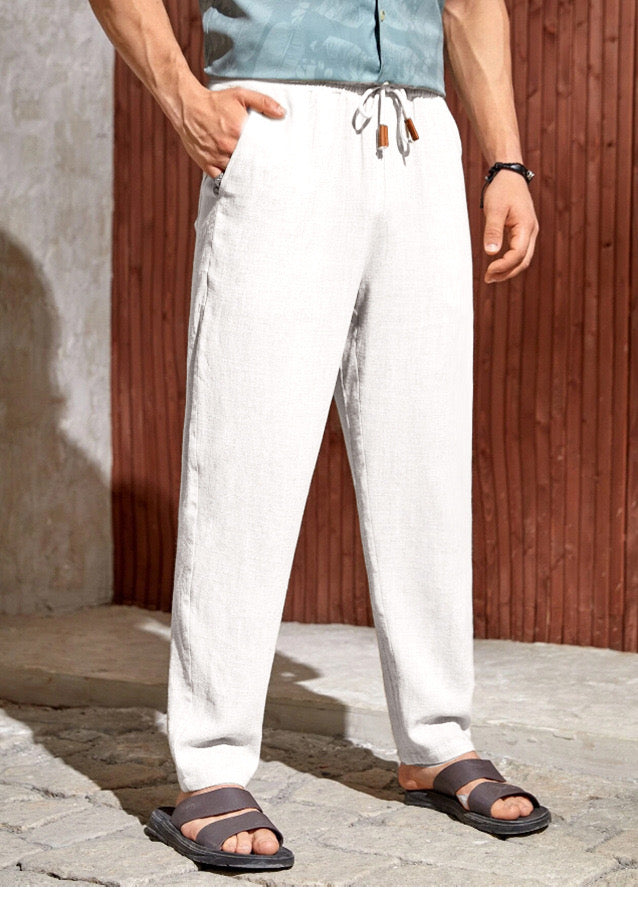 Conçus pour les journées chaudes et les soirées fraîches, offrant un équilibre parfait entre confort décontracté et style raffiné. Fabriqués en lin respirant avec une coupe décontractée, ils disposent d'une taille à cordon de serrage ajustable pour un ajustement personnalisé — que vous soyez en train de vous détendre, de voyager ou de sortir.